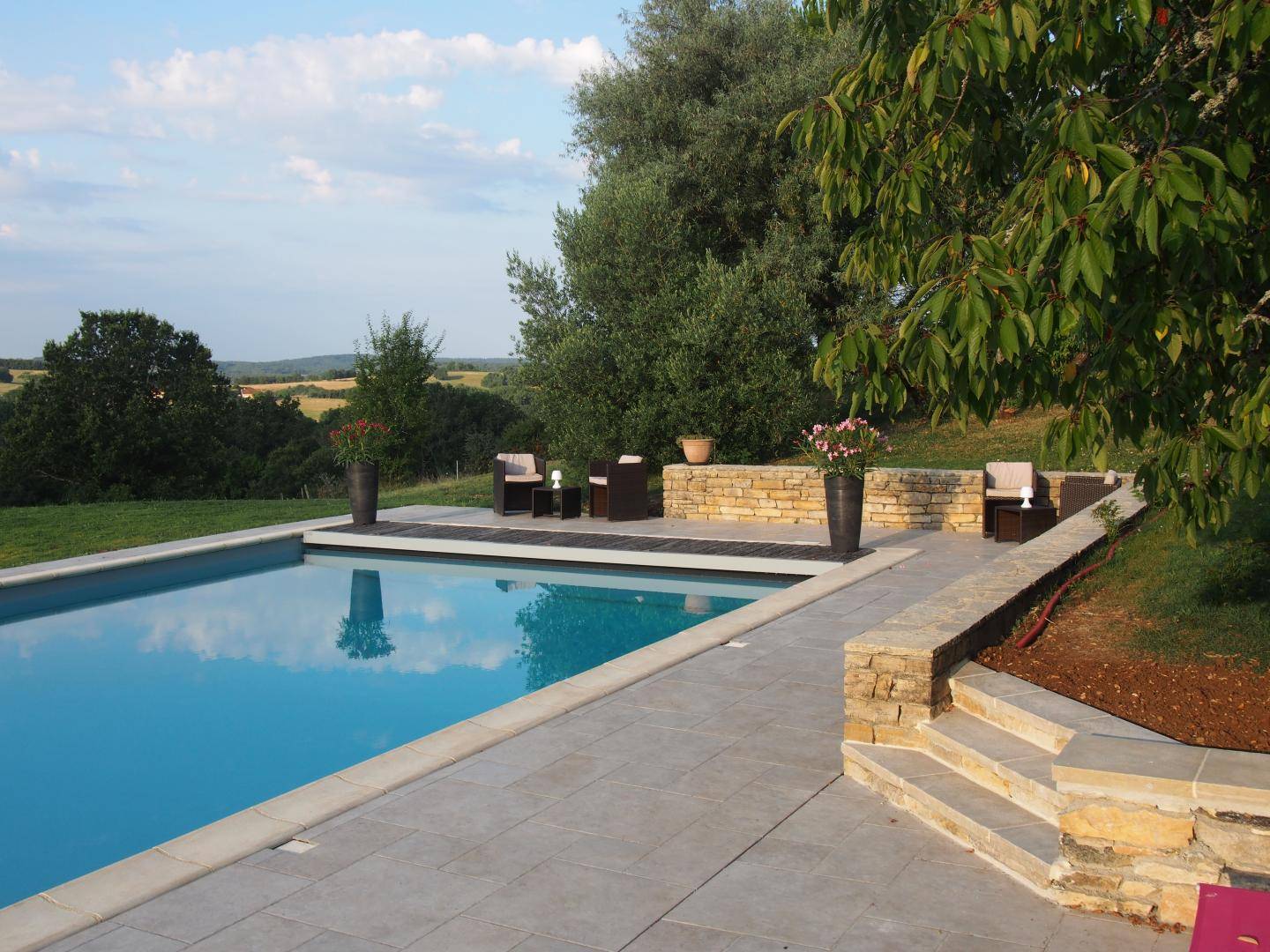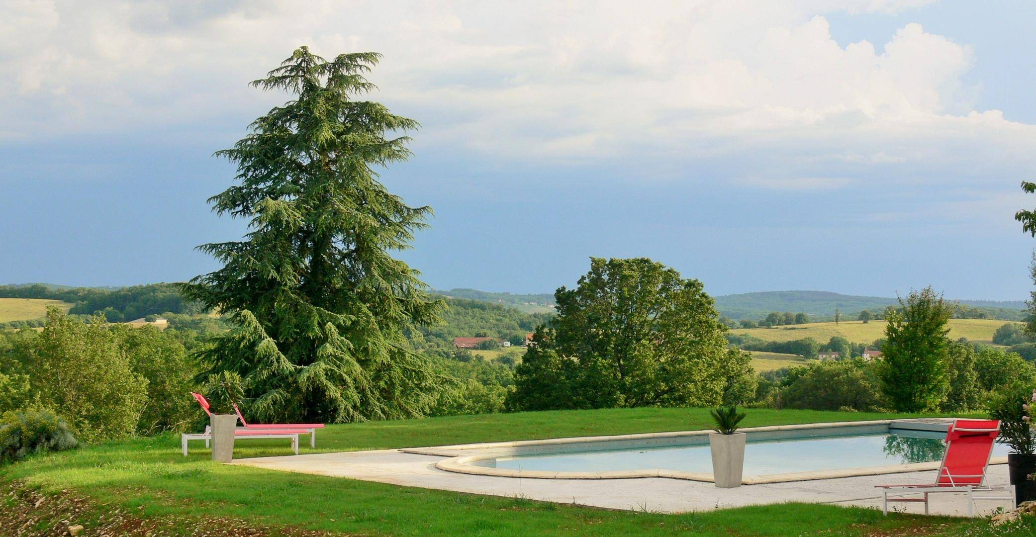 Ici, il y a comme un air de Toscane ! Implantée sur plus de 1ha de prairies, cette propriété qui domine la campagne environnante fait effectivement penser à la Toscane par ses cyprès, ses jeux de lumières entre la couleur de la pierre et le bleu de la piscine ! La Longère de Bessous est heureuse de vous accueillir pour un inoubliable séjour, où vous savourerez, sa douceur de vivre, sa vue panoramique exceptionnelle et le ciel étoilé du Quercy Bourian. Besoin d'une pose fraîcheur ? La piscine, insérée dans un écran de pierre et de verdure est là pour vos moments de détente.
