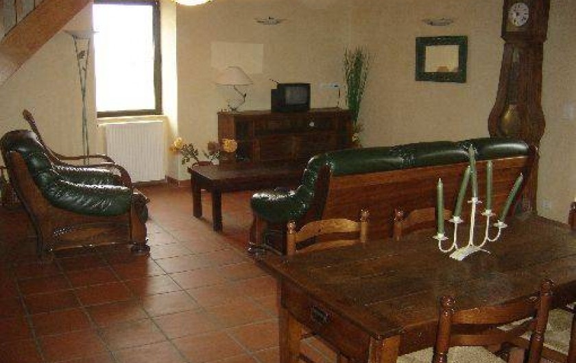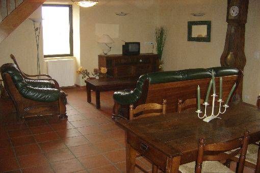 Gîte sur plusieurs niveaux: Au RDC : salon/salle à manger (35 m2) avec cheminée insert, cuisine indépendante accessible par 4 marche wc.