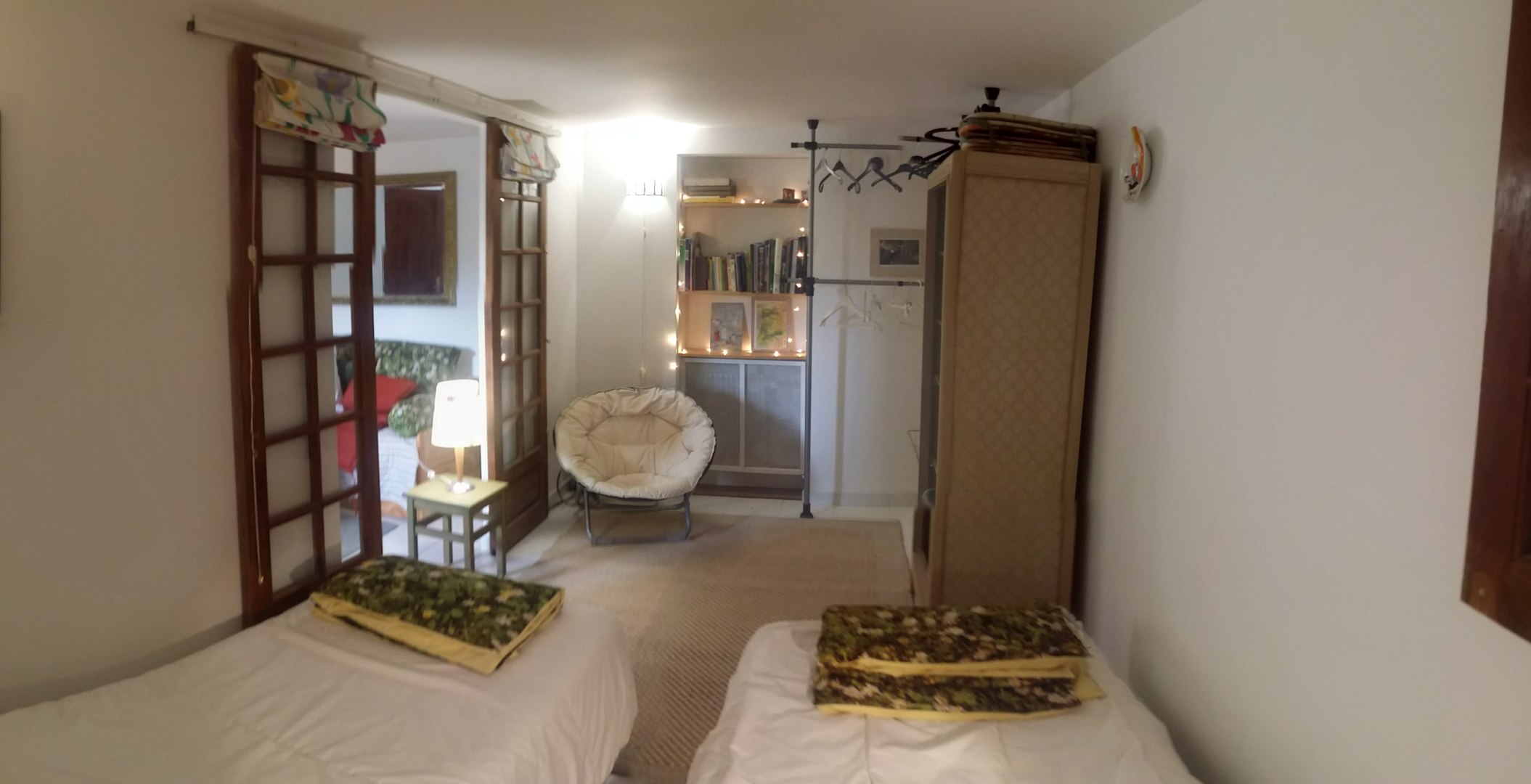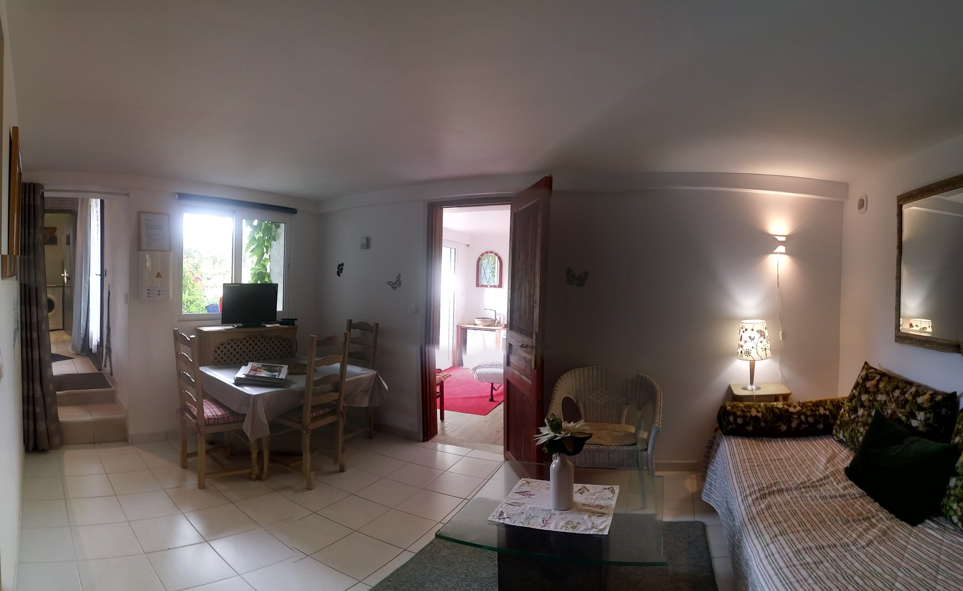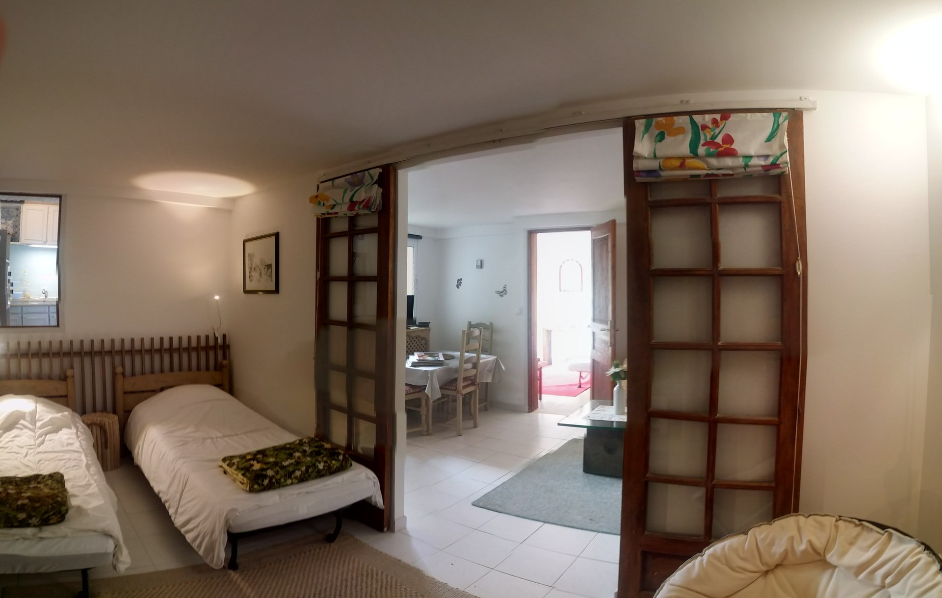 3 pièces : séjour/salle à manger avec 1 banquette/lit (90 cm) et tiroir/lit (90 cm), TV. WIFI. Petite chambre avec 2 lits simples (80 cm) ou lit double. Chambre indépendante avec lavabo : lit double 180 cm (ou 2 lits jumeaux). Sur demande : 1 lit enfant, 2 lits bébé, chaise haute et accessoires... Cuisine bien équipée avec