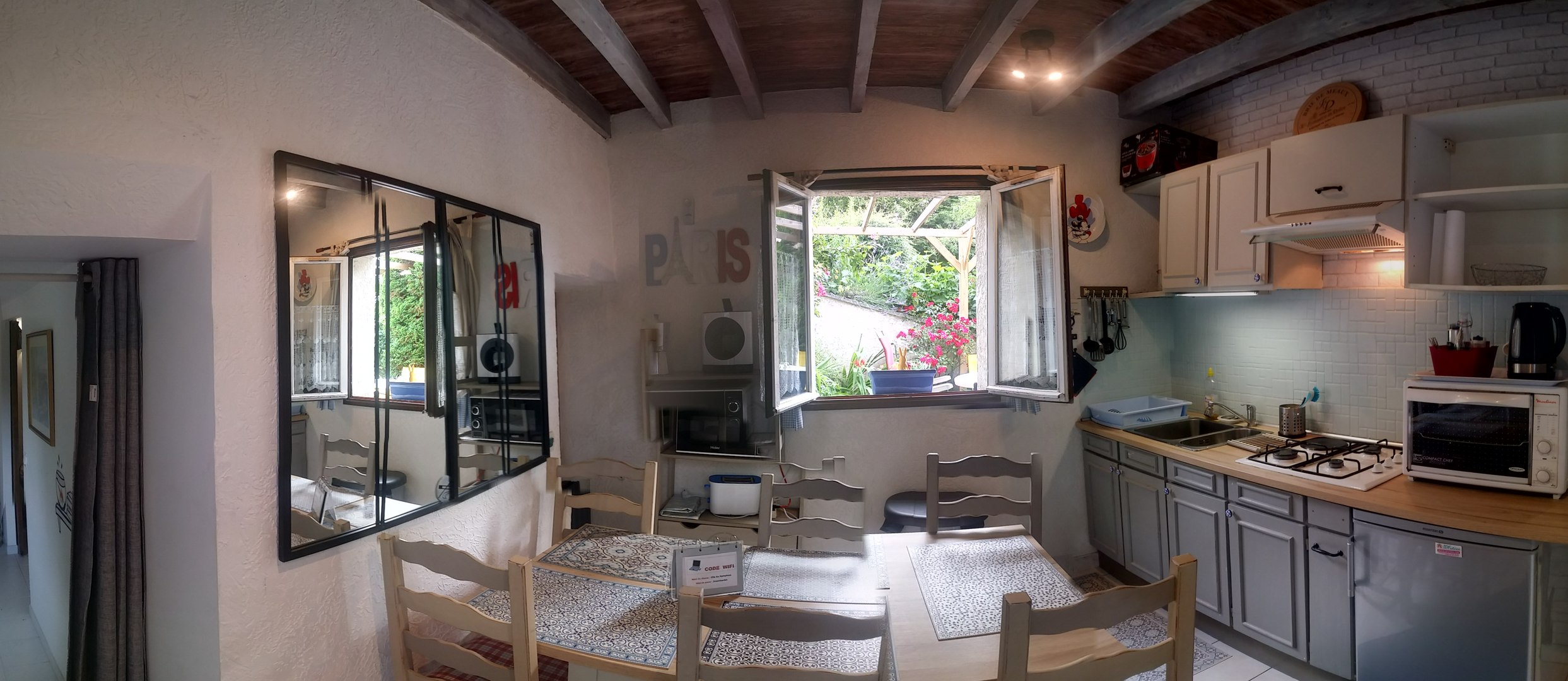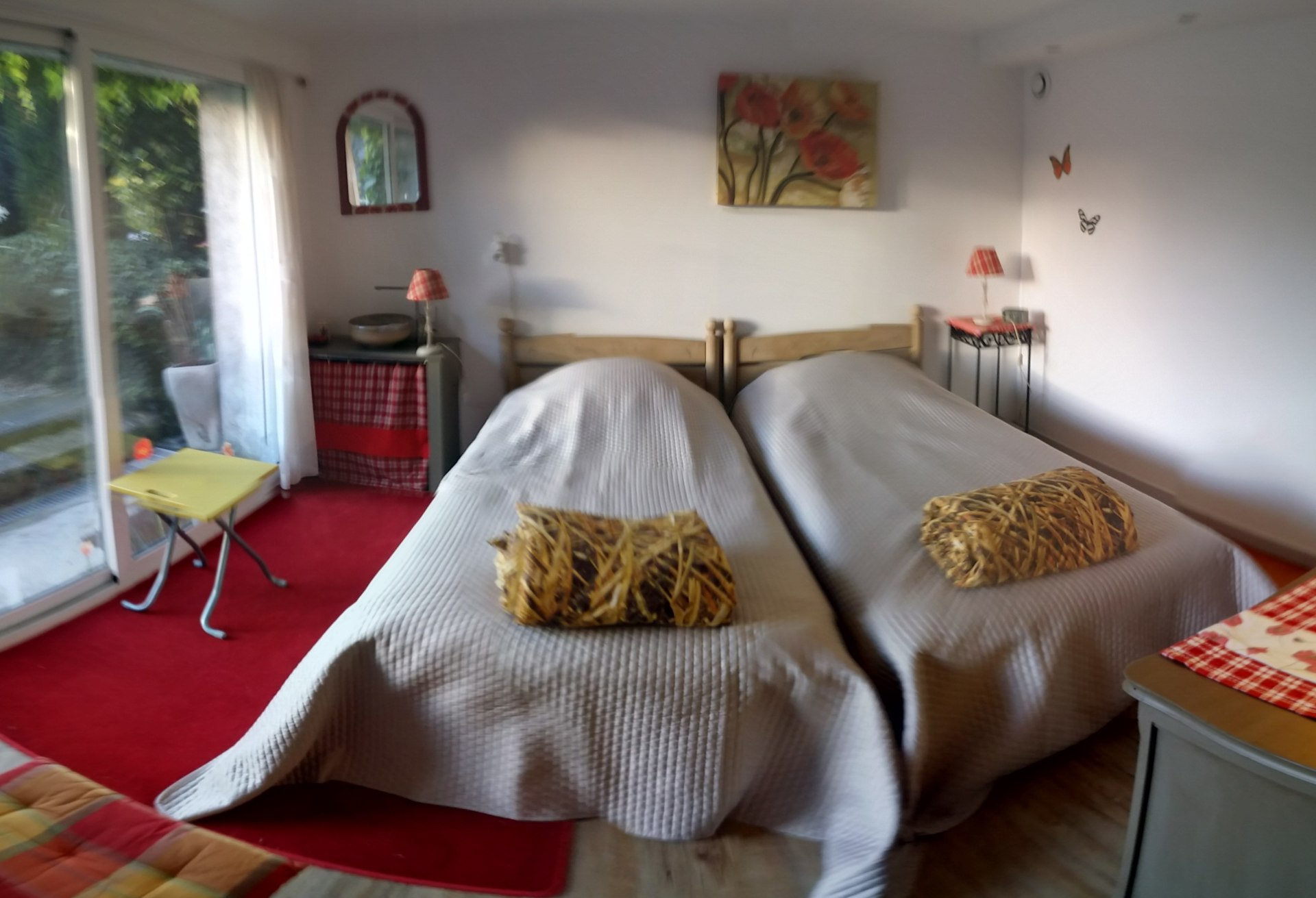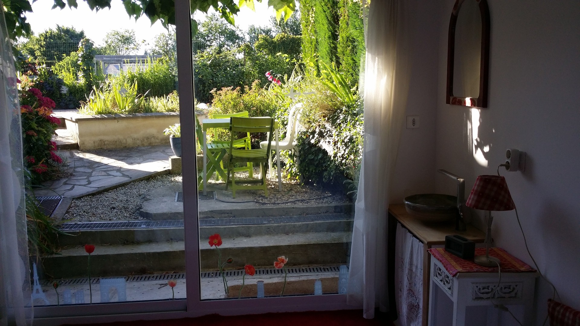Location d'un gîte classé 2 étoiles de 50 m² indépendant, en rez-de jardin (fleuri et arboré : 2500 m²) attenant à la maison des propriétaires. Parking et terrasse privés, barbecue, jeux de plein air (ping-pong, basket, balançoires, foot, fléchettes...).