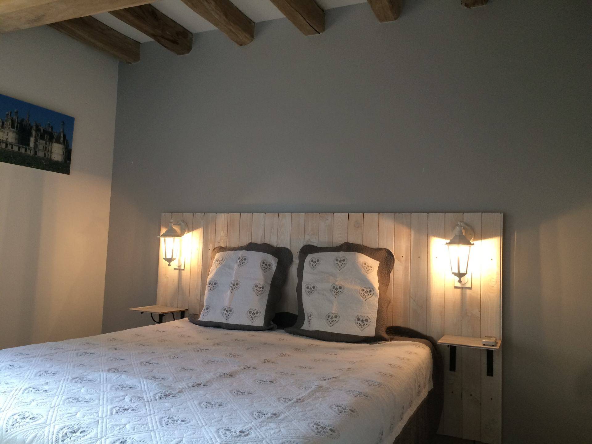 - 1 chambre avec poutres (lit double de 160) et placard.