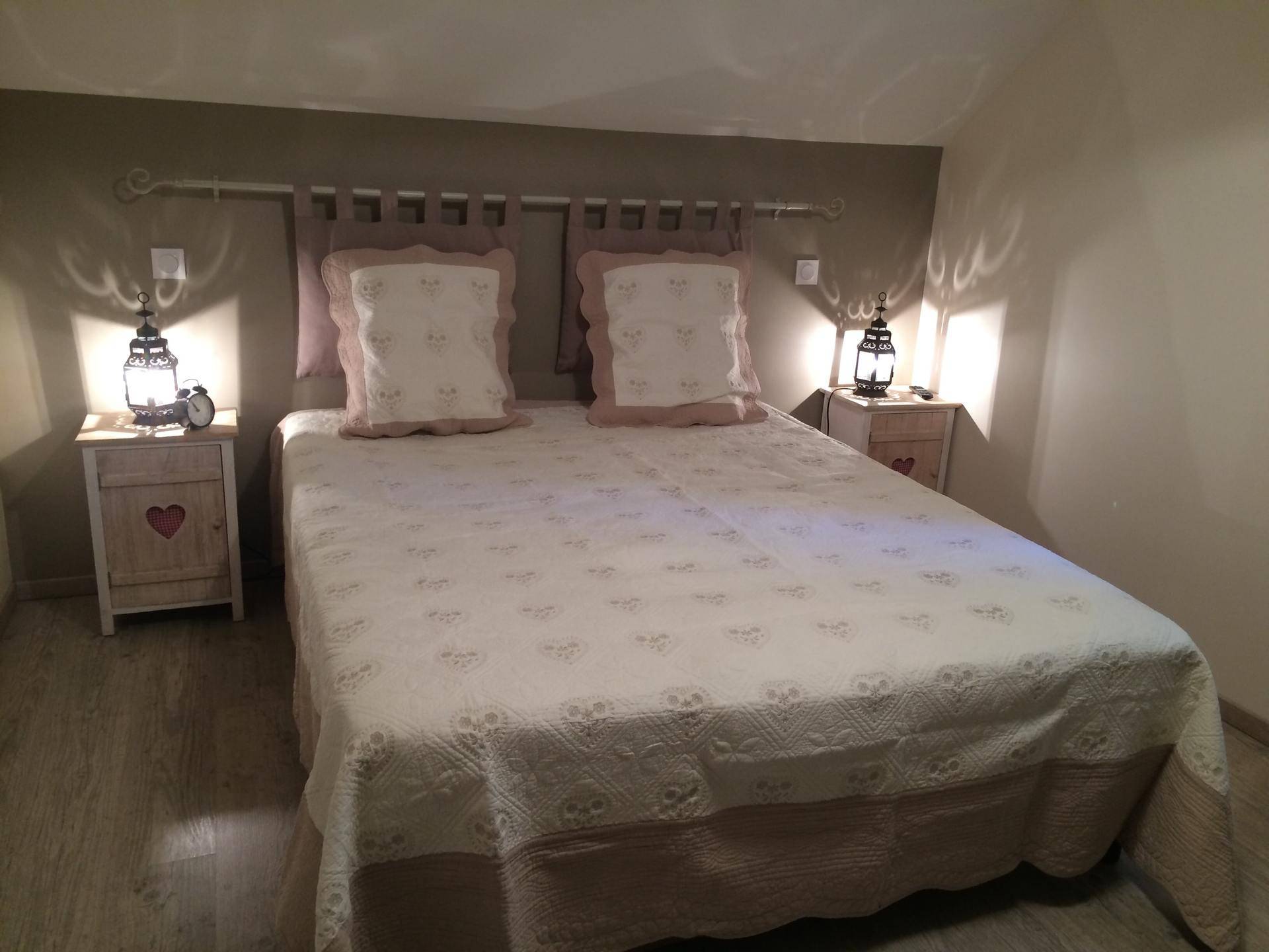 - 1 chambre avec lit double de 160 et une armoire + TV
