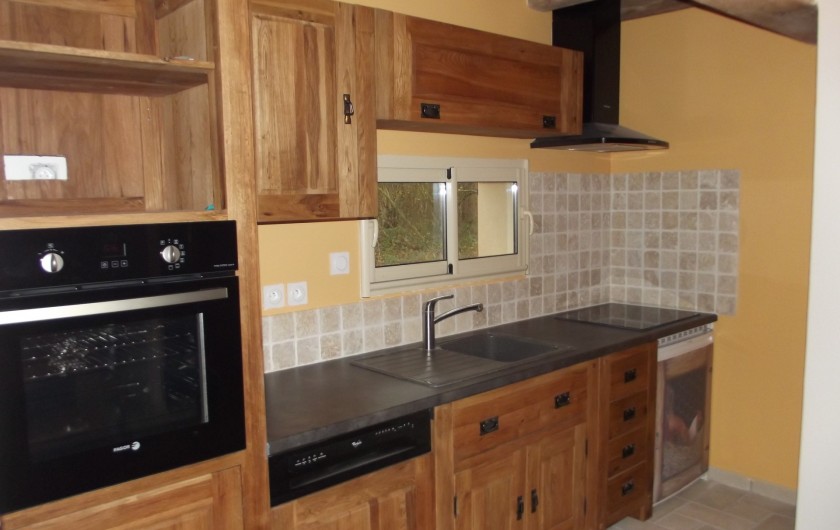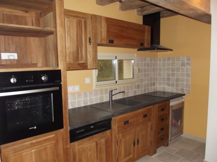 - une cuisine ouverte entièrement équipée à neuf avec lave-vaisselle, four, micro-onde, plaques vitrocéramiques, hotte, frigidaire-congélateur et petits appareils.