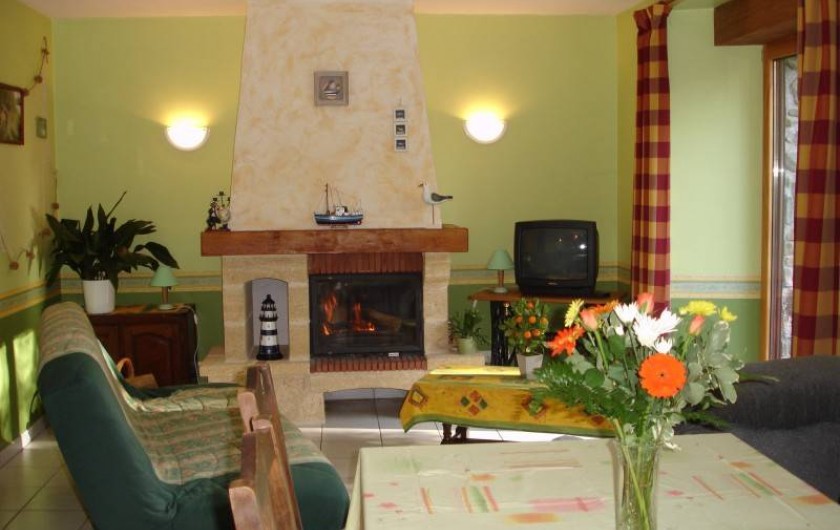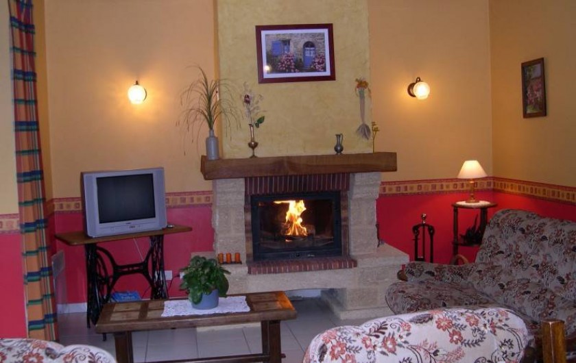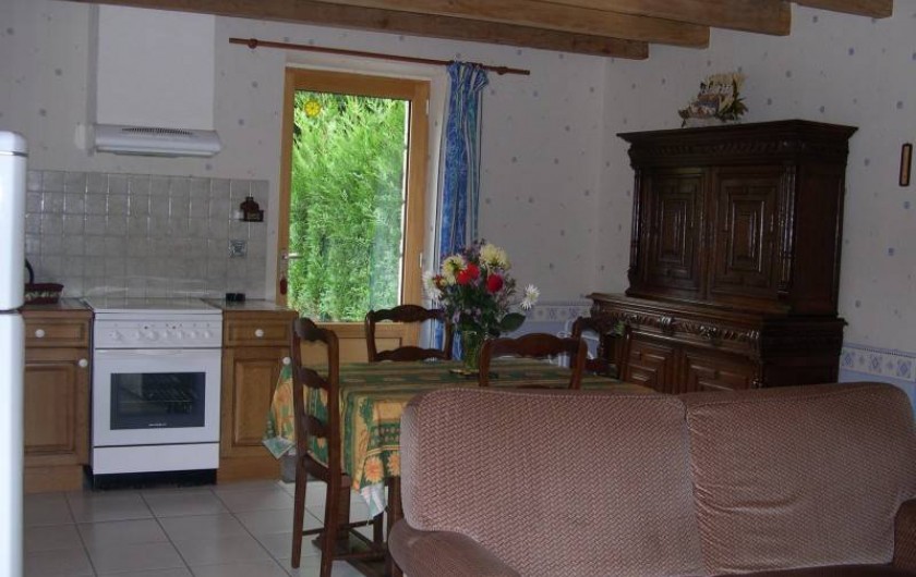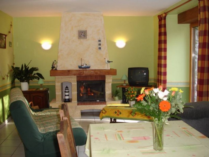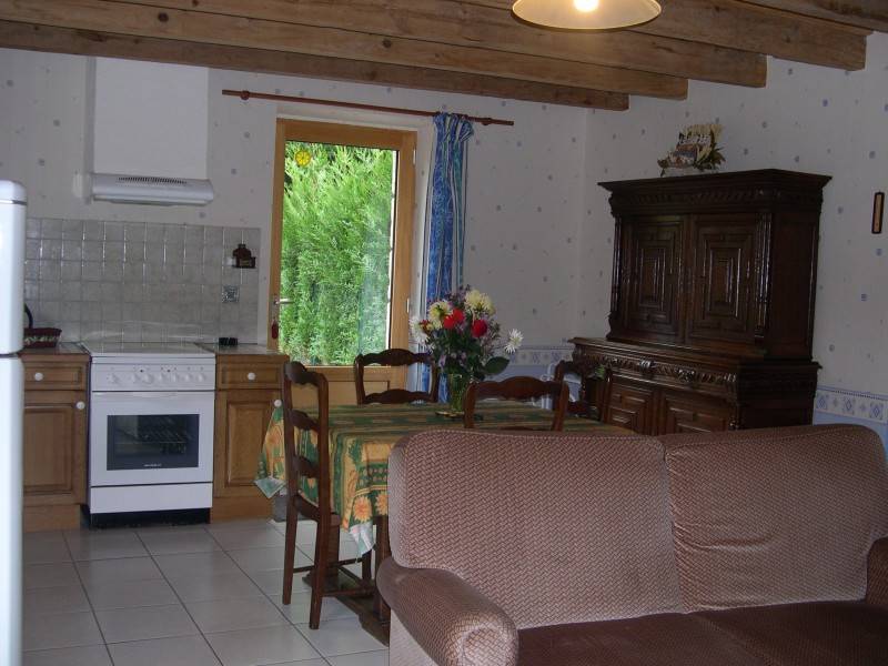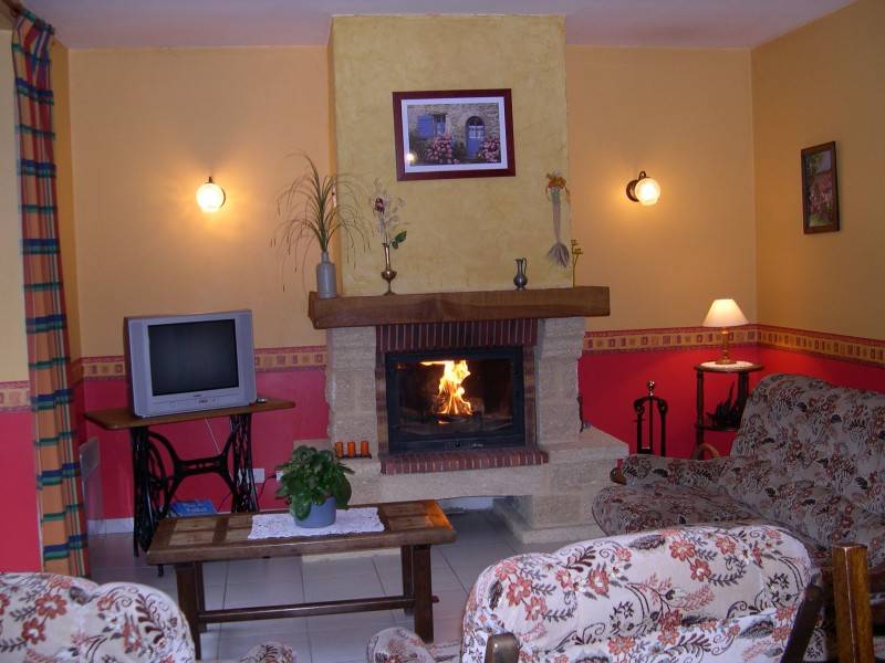 Salon-séjour (cheminée) avec coin cuisine aménagé.
