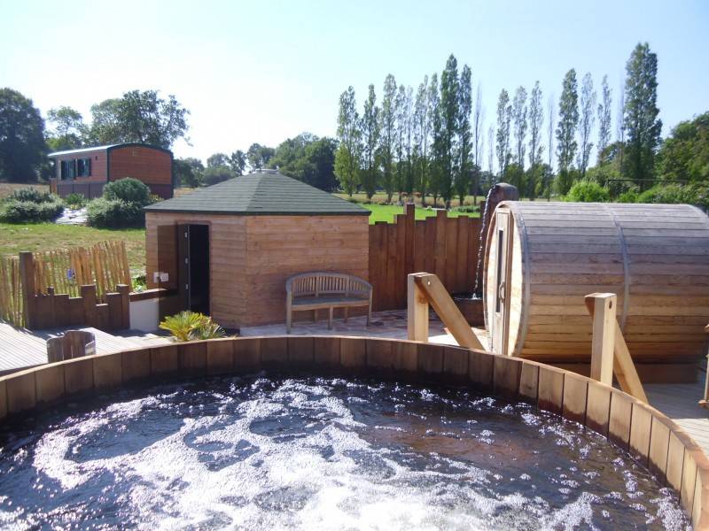 L'Espace Bien-Etre du Domaine Arvor a été créé en réhabilitant le hangar agricole de l'exploitation dans le respect de la nature et du bois.