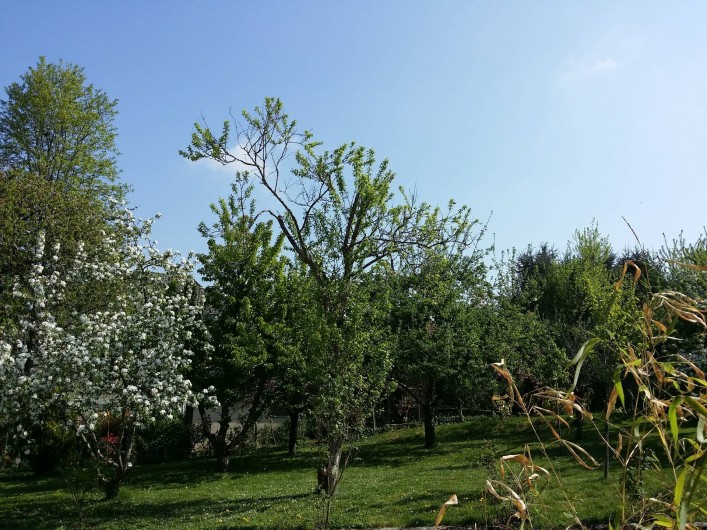 Maison individuelle de 66 m² avec terrasse, jardin cloturé et accès indépendant pour 6-8 personnes, rénovée en 2014, vue sur verger, dans quartier calme, proximité du centre-ville et des attractions touristiques de la ville (port touristique, musée, différents jardin, vélo route Nantes Budapest) possibilité de venir à pieds de la gare SNCF ou transfert par nos soins.Une chambre avec un lit 2 personnes et SDB avec WC