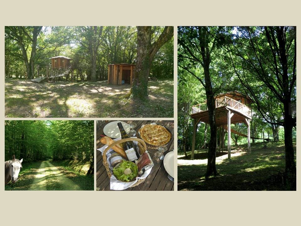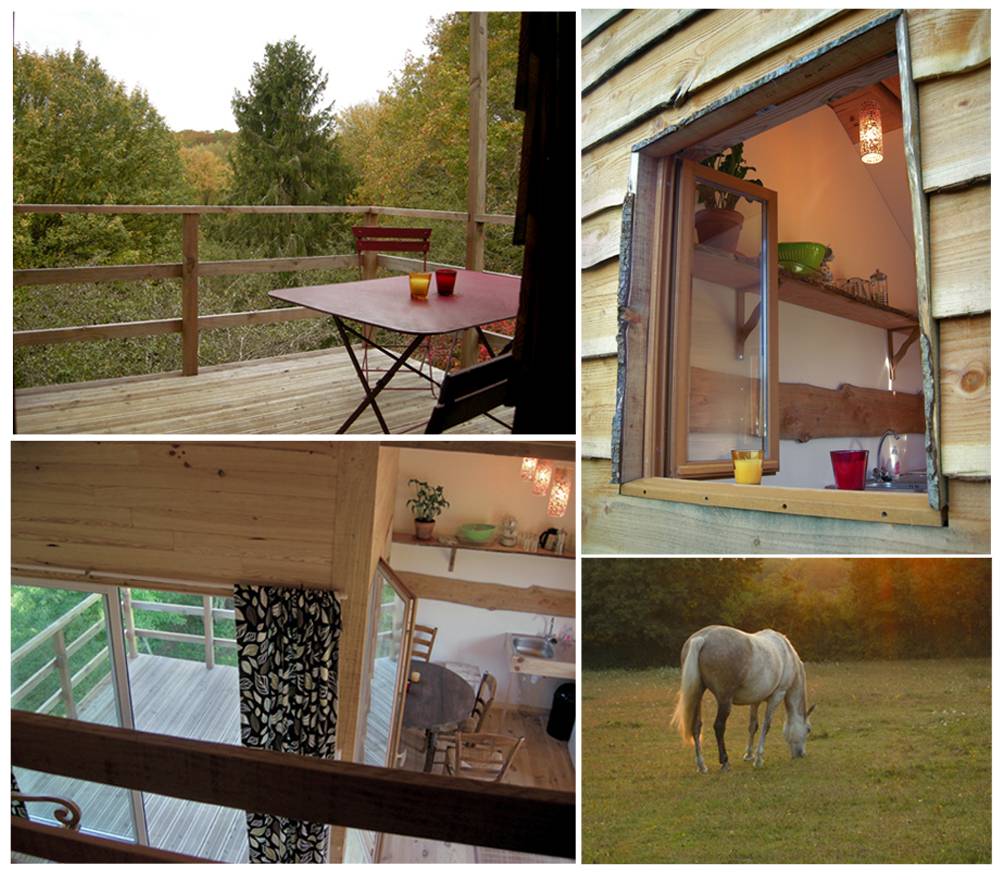 Nichée dans un petit bois à l'orée du pré. On y accède par un pont de singe.