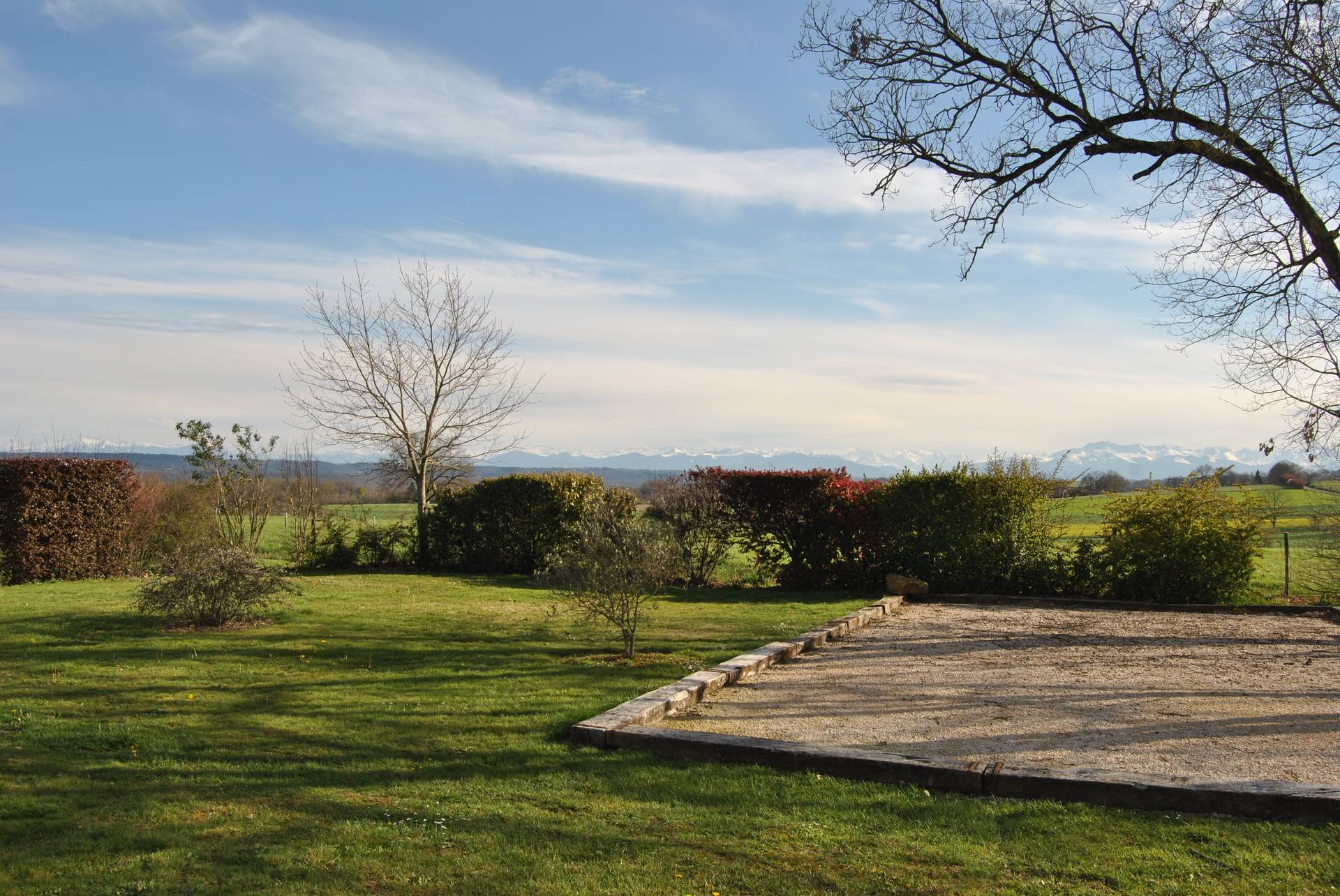 Location d'une maison de campagne, indépendante, située dans un cadre magnifique avec parc ombragé et fleuri de 5.000 m², avec piscine sécurisée et vue panoramique sur les Pyrénées, garage fermé privé et automatisé.