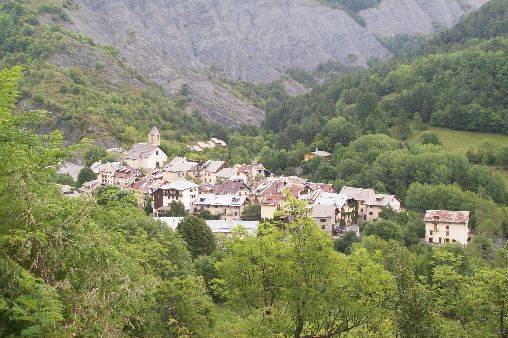 Vue panoramique sur le Village d'Entraunes, à 1270m d'altitude, au pied du Col de La Cayolle.