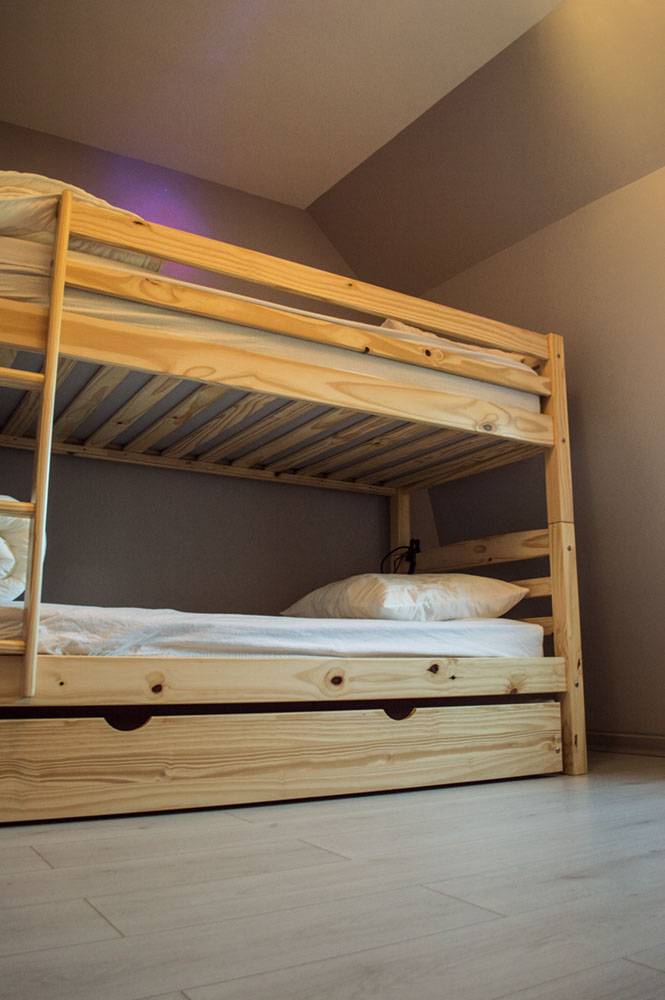 - 3 chambres: une chambre avec une grande douche et un lit de 160x200, une chambre avec lits superposés et tiroir-lit et une chambre avec lit de 140x190.