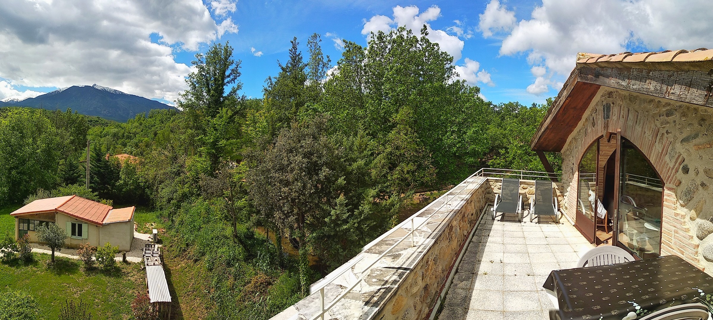 Cette charmante chambre d'hôtes possède une splendide terrasse avec vue sur le Canigou. d'une capacité de 4 personnes ( un espace chambre avec lit de 2 personnes et d'un autre coin chambre mansardée équipée de 2 lits simple). Le petit déjeuner est servi sur la terrasse pour encore mieux apprécier l'environnement du Moulin.