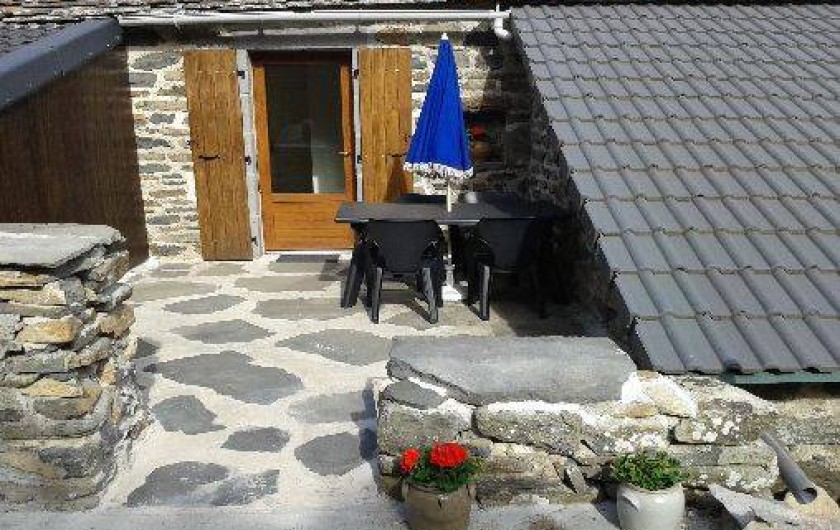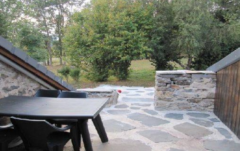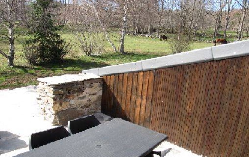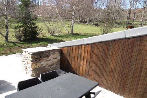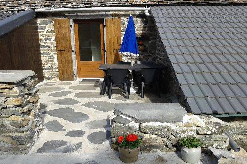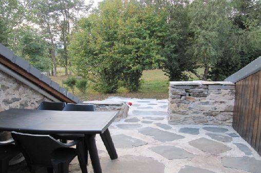 salle d'eau, wc indépendant, chauffage central + poêle à bois, terrasse avec mobilier de jardin.