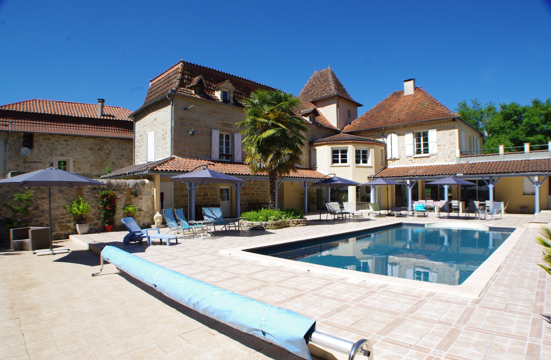 Grand gîte de 70 m² avec terrasse équipée, vue piscine dans le domaine de l’Escadasse (parc de 8700 m²), à Faycelles Près de Figeac sur le chemin de Saint Jacques de Compostelle dans le Quercy.