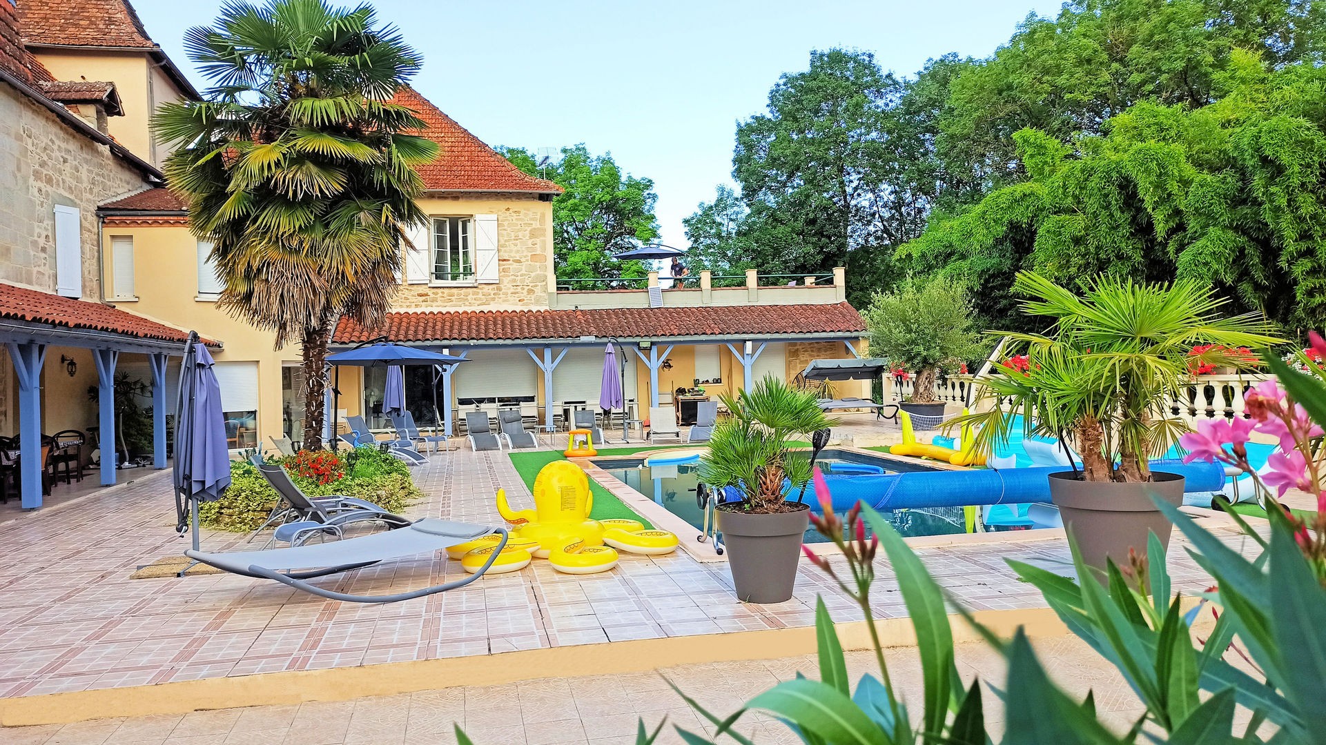 Nous sommes au bord de la rivière du Lot, derrière le domaine il y a 1 km de verdure et de balades le long de la rivière.
