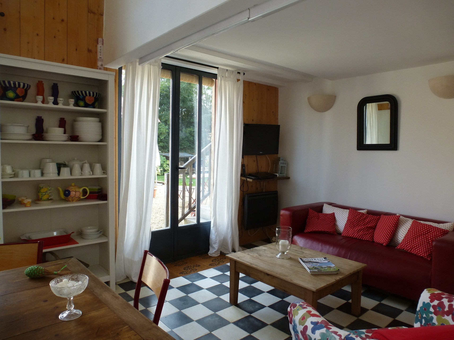 Maison indépendante d'environ 60m2 avec tout le confort, au rez-de-chaussée une grande pièce à vivre avec cuisine entièrement équipée,coin repas,salon avec canapé lit,télévision,DVD,internet etc....,un grand escalier mène d'une part à une grande chambre avec de nombreux rangements ,d'autre part à la salle de bain avec lave linge séchant,et toilettes.