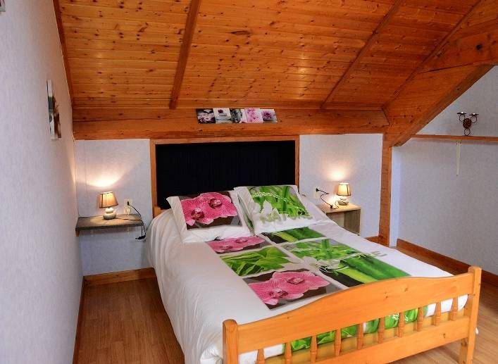Gîte situé au 1er étage d'une maison avec entrée indépendante et vue panoramique sur la Lac à la Dame. Cuisine indépendante toute équipée, grande pièce de jour avec salon (lecteur dvd), salle de bains (baignoire), ch1: 1 lit 2 places. A l'étage: ch2: 1 lit 2 pl et un BZ (couchages suppl.) avec salle d'eau attenante, ch3: 1 lit 2 places, ch4: 2lits 1 pl et un BZ (couchages suppl.). Chauffage central, balcon, terrain non clos, salon de jardin, barbecue. Toutes charges comprises. Draps et linge de maison fournis gratuitement.