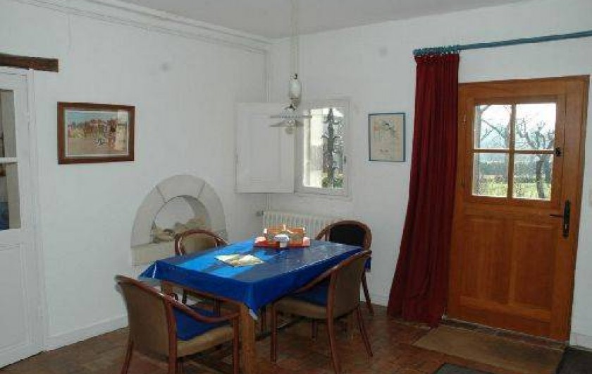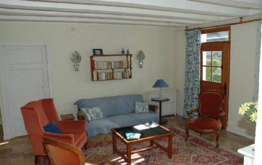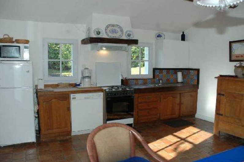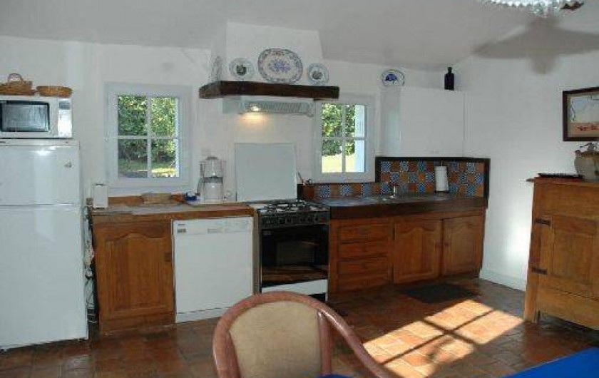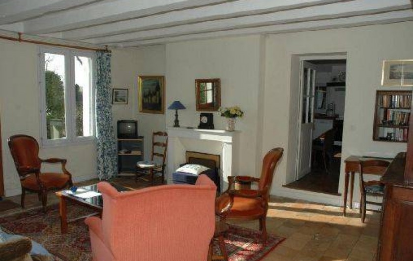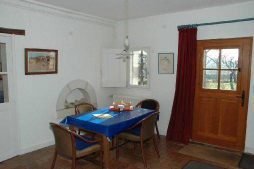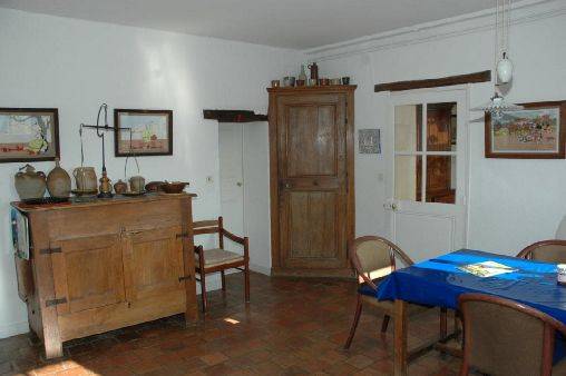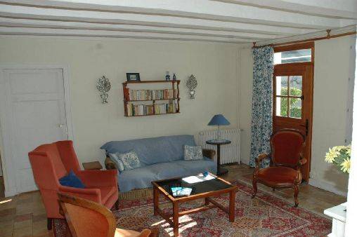 caractère. R.d.c. : séjour-salon, grande cuisine avec coin-repas, 2 ch. (1 lit 160, 2 lits 90, 1 lit bébé), salle d'eau, wc. Chauffage central gaz (en sus selon compteur). Jardin clos, abri de jardin. English spoken. Patinoire à 7 km et piscine à 5 km. Taxe de séjour en sus.