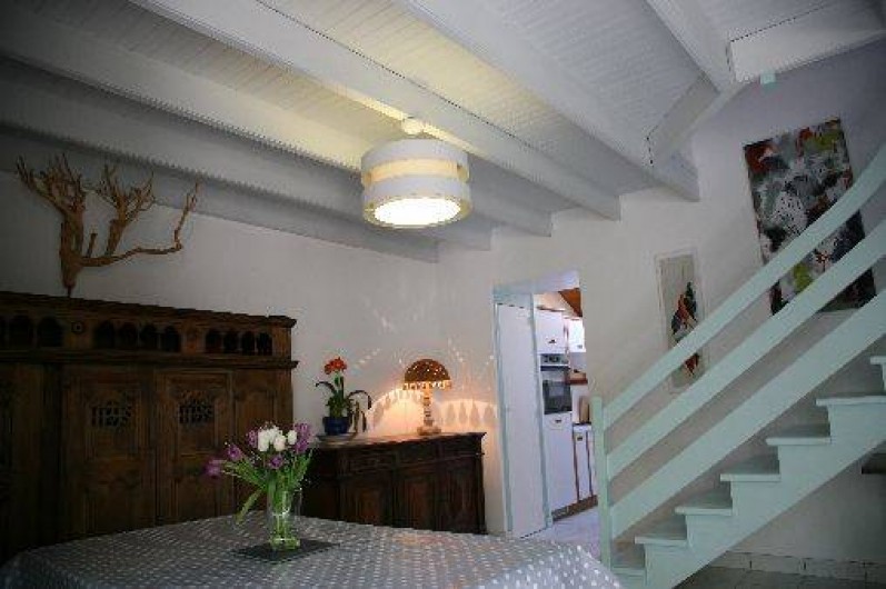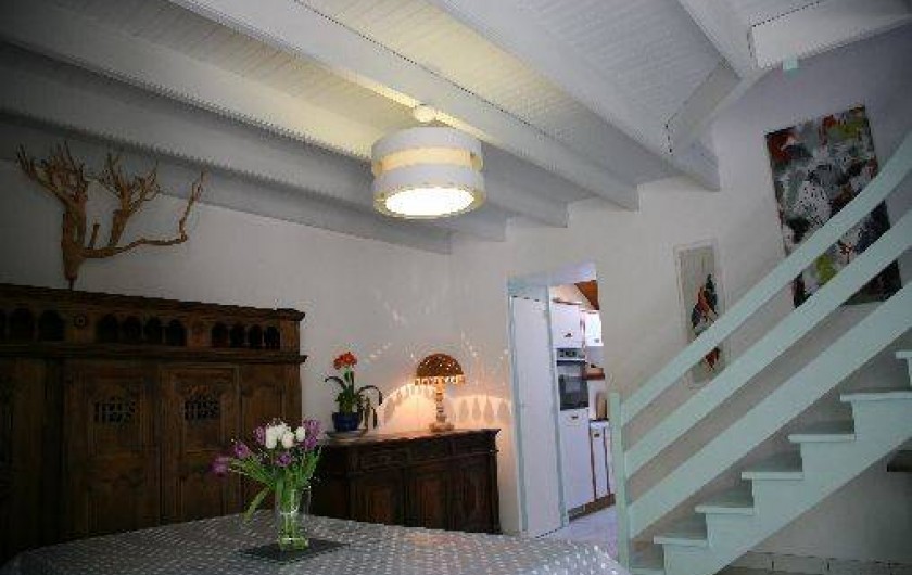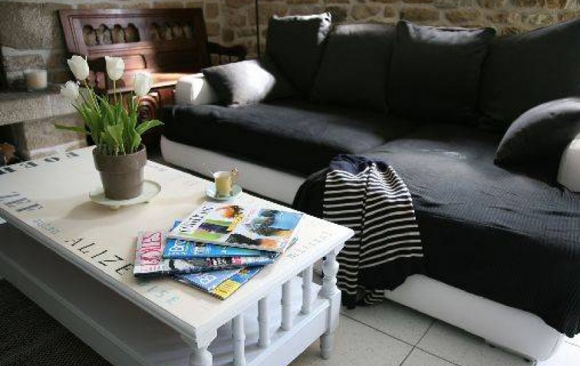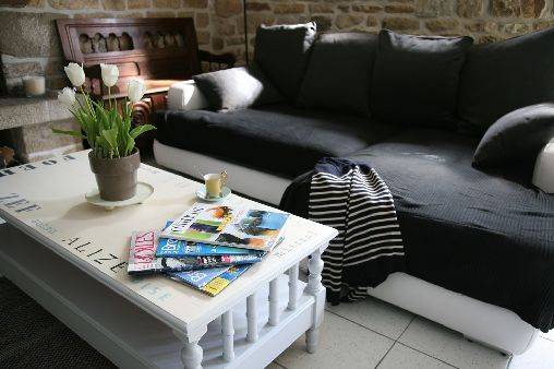 sur cette annonce et le Penty Trinquette: 4 personnes – Environ 72m² . Rez de chaussée Un salon-salle à manger avec un poêle à bois. Télévision et lecteur DVD. Un lit Clic-clac. Une véranda orientée Nord/Est idéale pour les petits déjeuners au soleil. Une cuisine attenante avec un four, une machine à laver la vaisselle, micro onde, cafetière, bouilloire.