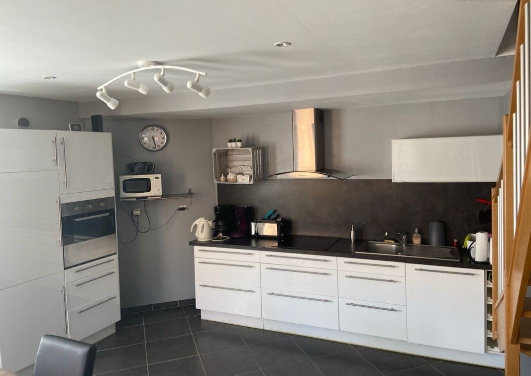 grand séjour/salon/coin cuisine( entièrement équipé : lave vaisselle, réfrigérateur, congélateur, 4 feux inductions, four, cafetière classique, Senseo, bouilloire électrique, grille pain, micro ondes, tout nécessaire cuisine et vaisselle)