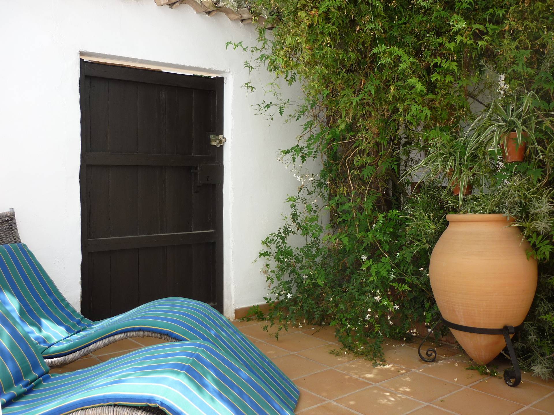 Dehors vous avez une cour privée entouré par des murs blancs traditionnels. Il y a aussi un coin ombragé pour les jours très chauds de l’été; des meubles du patio et un barbecue qui vous permet de profiter de la vie à l’extérieur fameuse d’Andalousie.