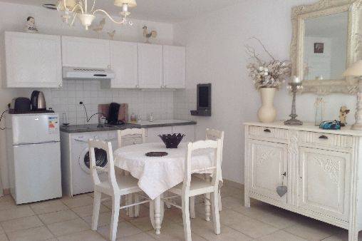 Location joli appartement deux pièces dans villa,comprenant un séjour avec coin cuisine équipé (lave-linge,plaques inductions,mini-four,cafetière dosettes,grille-pain,bouilloire,réfrigérateur-congélateur),wc en rdc,à l'étage une chambre avec placard et commode,un lit 140x190,salle d'eau.Possibilité d'un lit d'appoint de 80x190.