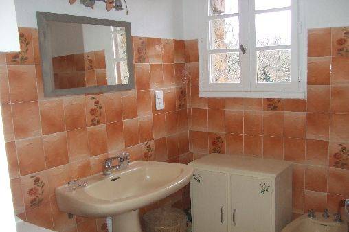 Sanitaires :salle de bain avec douche, lavabo, machine à laver, étendoir , wc.
