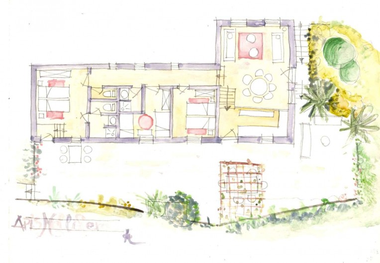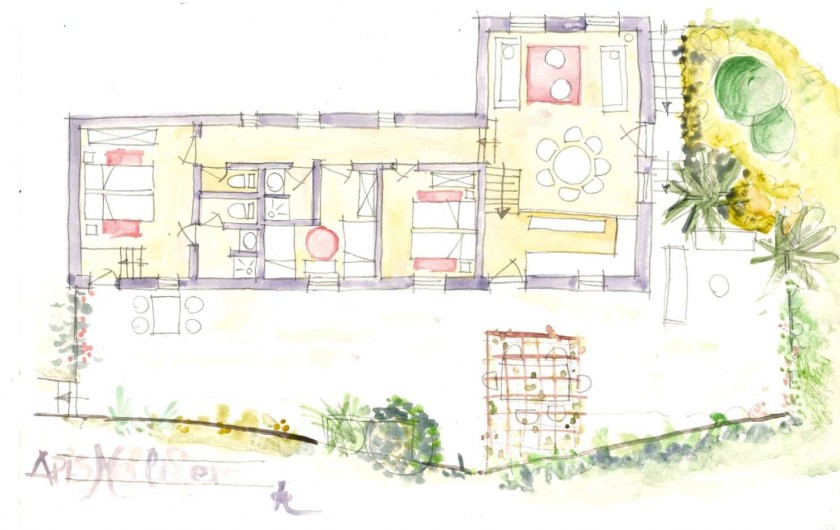 5 gites composés de : 2, 4 et 2X6 personnes . Chaque gite comporte une terrasse privative .