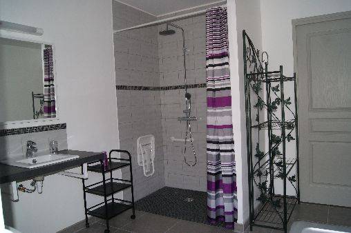 cuisine équipée, d'un vaste salon-séjour, d'une chambre spacieuse pour PMR et d'une grande salle de bain aménagée PMR.