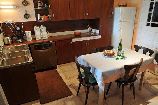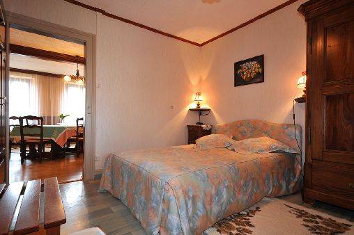 Maison mitoyenne à celle du propriétaire située au centre du village. Etage: CH2 (1 lit 2p, lavabo.), CH3 (2 lits 1p jumeaux, lavabo, CH4 (2 lits 1p, lavabo.), cabine de toilette. Rez-de-chaussée: CH1 (1 lit 2p), séjour (1 lit 1p), cuisine (Micro-ondes), salle de bains avec wc. Sous-sol: douche. Chauffage central en sus sauf vacances de Noël, Pâques et week-ends. Terrasse couverte et fermée, balançoire, verger, mobilier de jardin, salle de jeux (ping-pong, baby-foot), parking. Tarif dégressif 4 personnes en haute saison. Taxe de séjour incluse. Supplément animaux: