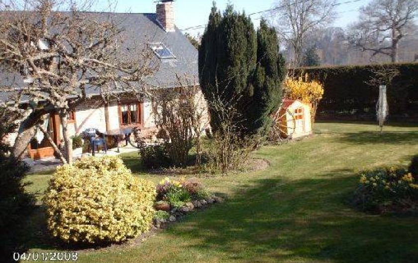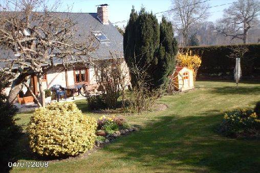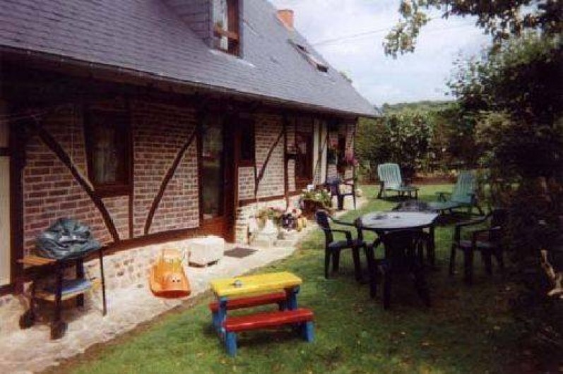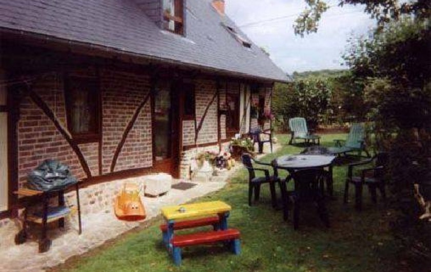 Maison indépendante à la campagne, proche de l'habitation des propriétaires. Entourée d'un jardin en pelouse clos avec salon de jardin et barbecue. La maison dispose d'une vue sure la mer depuis l'étage. Le jardin donne sur un parking commun à nos gîtes.