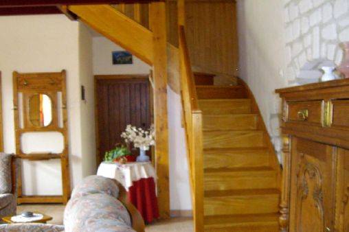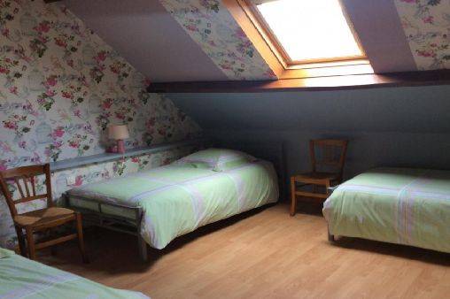 En dehors du village, maison mitoyenne à d'autres bâtiments comprenant 2 gîtes, rdc + étage, terrain clos commun, cour, terrasse. Séjour coin cuisine, salon. 1 ch (1 lit 2 pers), 1 ch (2 lits 1 pers), 1 ch (1 lit 2 pers + 2 lits 1 pers) 2 s.d'eau dont 1 avec wc, 1 wc séparés. Caution. Charges non comprises. Table de ping-pong, trempoline.