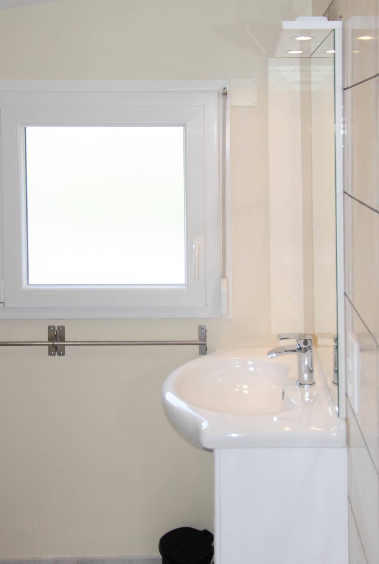 Salle d'eau avec lavabo et douche. WC indépendant.