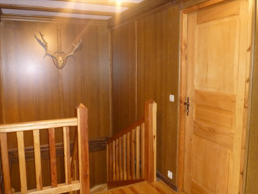 A l'étage, qui reste frais l'été et confortable l'hiver, se trouvent les 4 chambres (4 lits 2 personnes + armoires), donnant sur le jardin ou la forêt.