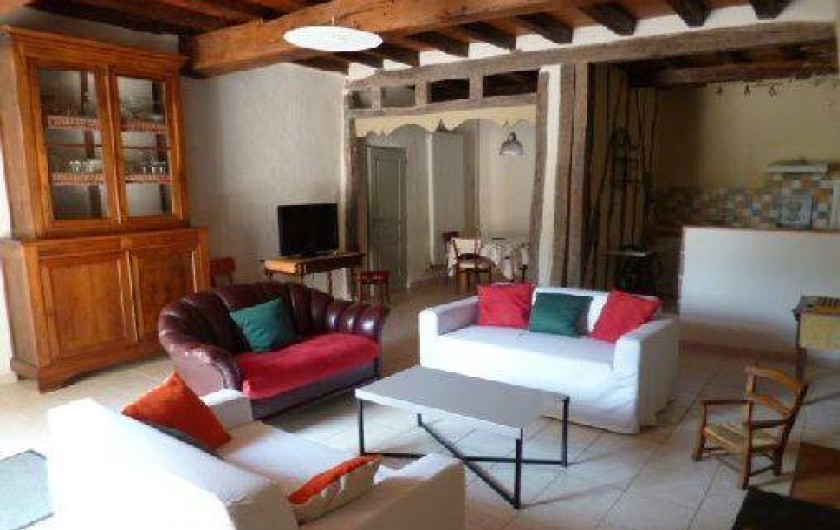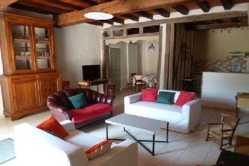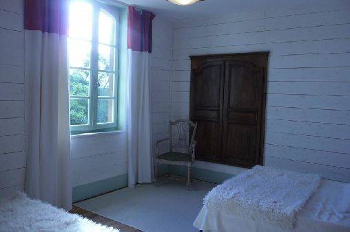 Dans un corps de ferme authentique, appartement (100m² - rez de chaussée + étage) restauré en 2011 avec goût et dans le respect de la bâtisse, ouvrant sur une grande cour fleurie et aménagée en terrasse, entourée d'un grand parc arboré de chênes centenaires. Vous profiterez des 5 ha de la propriété et de son bois pour de belles balades à la campagne.