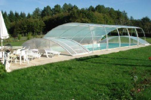 piscine couverte de 11x5 .(possibilité de baignade même par temps de pluie)bains de soleil grande pelouse.