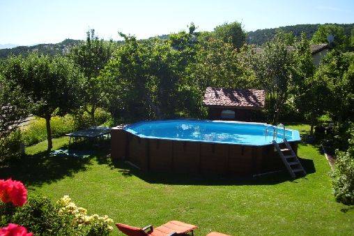 aménagements extérieurs : Jardin, 2000 m² aménagé, piscine de juin à septembre, balançoire, ping-pong, kiosque, barbecue, chaises longues, proche des chemins de randonnées, quartier calme près du petit village de la Bâtie-Vieille, vue dégagée sur la chaîne des montagnes du parc de Ecrins. Lac de Serre-Ponçon à 15 mn.