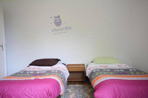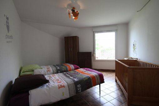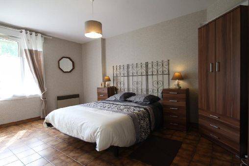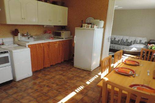 Maison contemporaine de plain pied mitoyenne au propriétaire. Rdc : entrée, séjour (canapé lit), cuisine, 1 chambre (1 lit 2 personnes avec matelas massant électrique), 1 chambre (2 lits 1 personne, 1 lit bébé), salle d'eau, wc indépendant. Chauffage électrique inclus. Jardin clos commun avec le propriétaire, bordé par une rivière non close. Volière