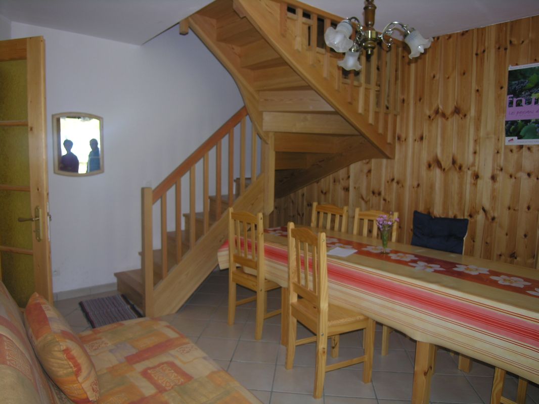 Gîte sur 3 niveaux, avec une entrée au 1er étage, balcon. Séjour, coin salon, cuisine intégrée (l-vaisselle, four m-ondes, congélateur, l-linge), wc.