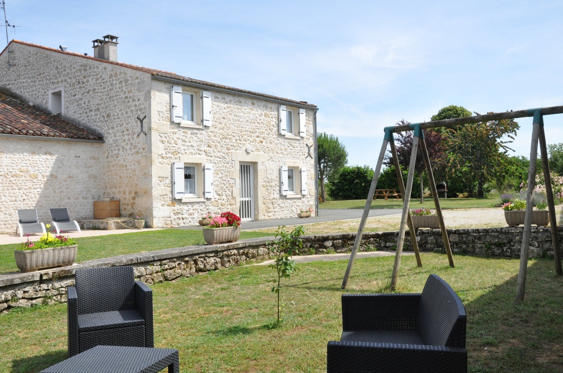 A votre disposition un terrain de 1500 m² entièrement clos, chaque gîte possède un barbecue, un salon de jardin, transats, un portique de jeux, une table de ping-pong, etc....