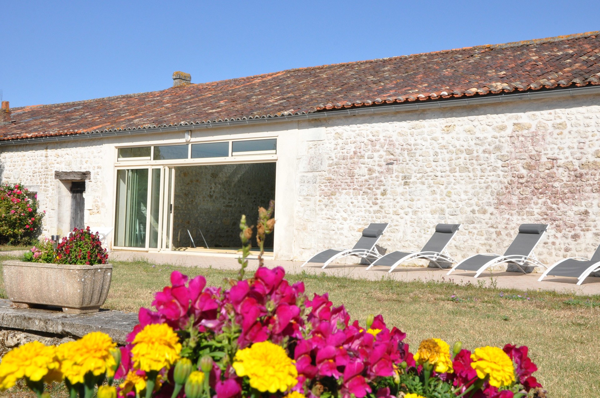 Notre piscine intérieure, à la disposition exclusive de nos hôtes, est chauffée toute l'année. Son bassin est de 9 x 4 avec un fond plat de 1,20m.