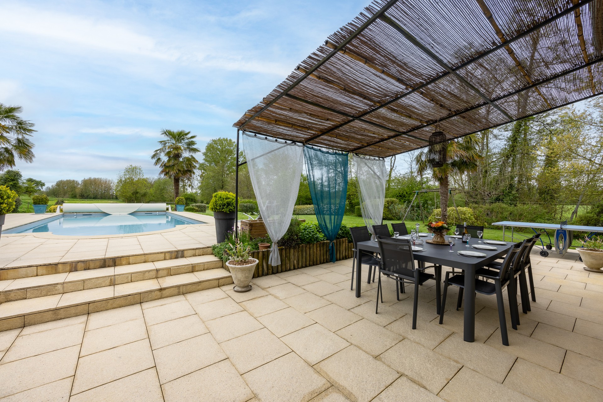 Venez séjourner en Vendée dans un grand gîte 5 étoiles entièrement privé " que pour vous " sur un espace de 6500 m² entre le Puy du Fou et La Rochelle. Le Fief d'Allard dispose de 235 m² avec 4 chambres, 2 SDB et 2 SDE, une décoration des plus raffinées pour 8 à 10 personnes. Gîte sans vis à vis avec grande piscine chauffée privative de 5 x 10 m réservée exclusivement aux vacanciers du gîte. Marc vous réservera un accueil personnalisé et répondra précisément à toutes vos attentes. Vous trouverez également :