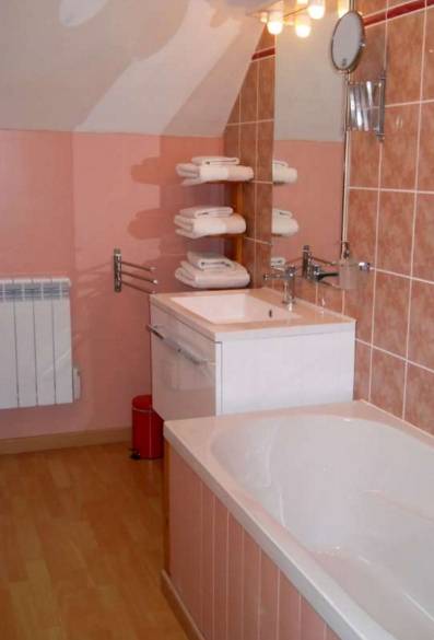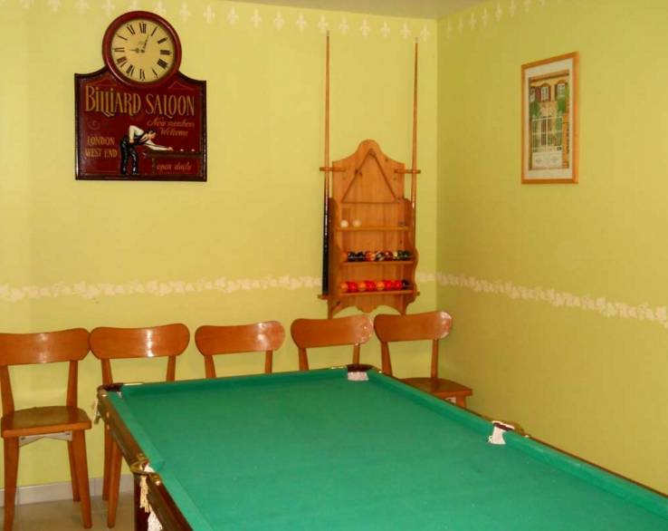 Dans le bocage normand, à la limite de la Suisse Normande, cette maison de 1825 hébergeait un bistrot de pays vers 1920 que tenait Angélina. C’est dans cet esprit que cette maison a été rénovée. Le salon rappelle l’ambiance « pub » : jeu de fléchettes, billard, cheminée et musique. Une guitare est laissée à disposition.