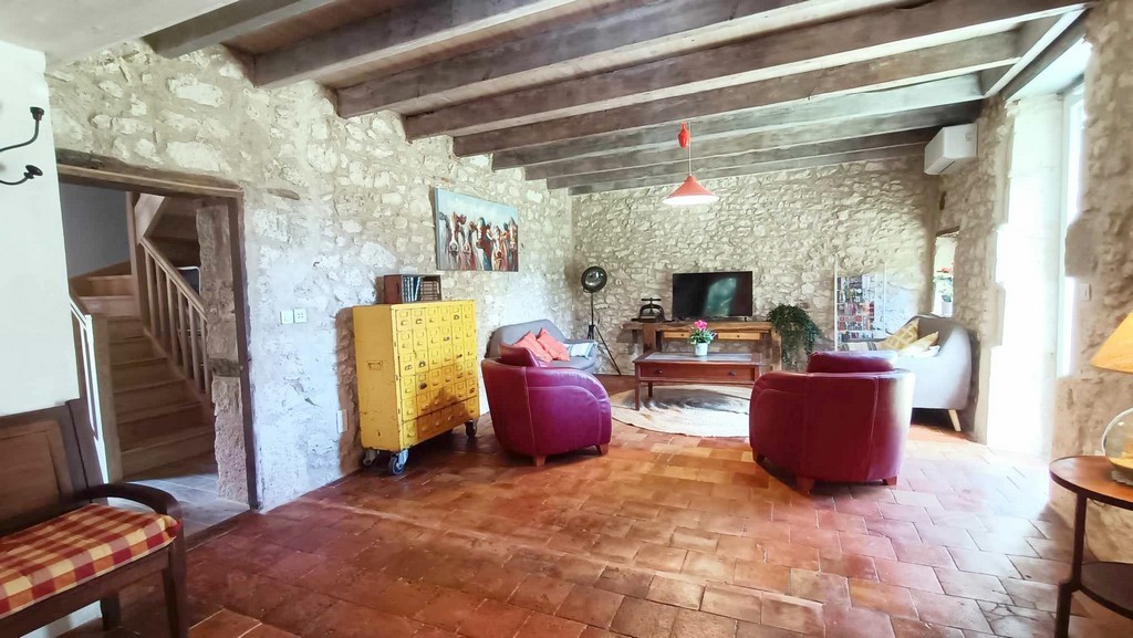 Cette maison en pierres et poutres apparentes à su garder son côté authentique et typique du département du Lot-et-Garonne.