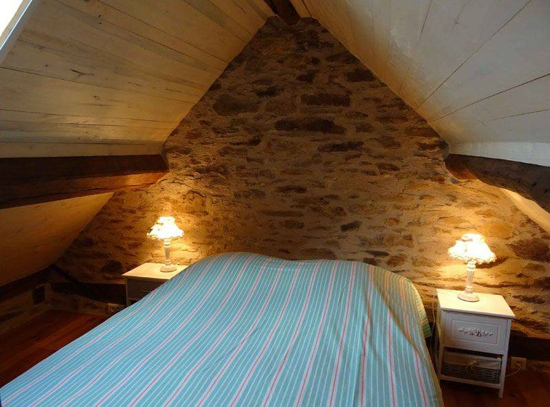 Gîte mitoyen à la maison des propriétaires, entrées indépendantes, sur 2 niveaux, dans un hameau. 1 chambre mezzanine (1 lit 160), salle d'eau, coin-cuisine/séjour (canapé, TV, accès internet/wifi), chauffage pompe à chaleur/climatisation réversible, terrasse/coin-pelouse privés (28m²), salon de jardin, barbecue, buanderie (lave-linge), piscine chauffée commune, parking privé, location de draps. Linge de toilette non fourni.