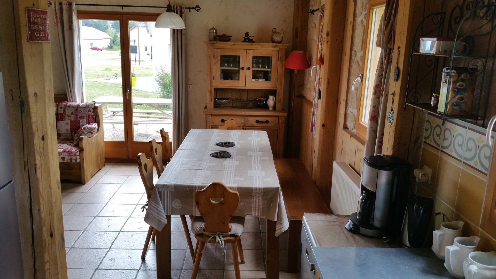 du Jura (1200m d'alt.), vous êtes encore dans les pâturages avec une vue superbe sur les crêtes des Monts Jura. Un confort tout naturel avec le chauffage au bois et l'énergie solaire, la convivialité avec des pièces communes (salle à manger, cuisine, et salon).