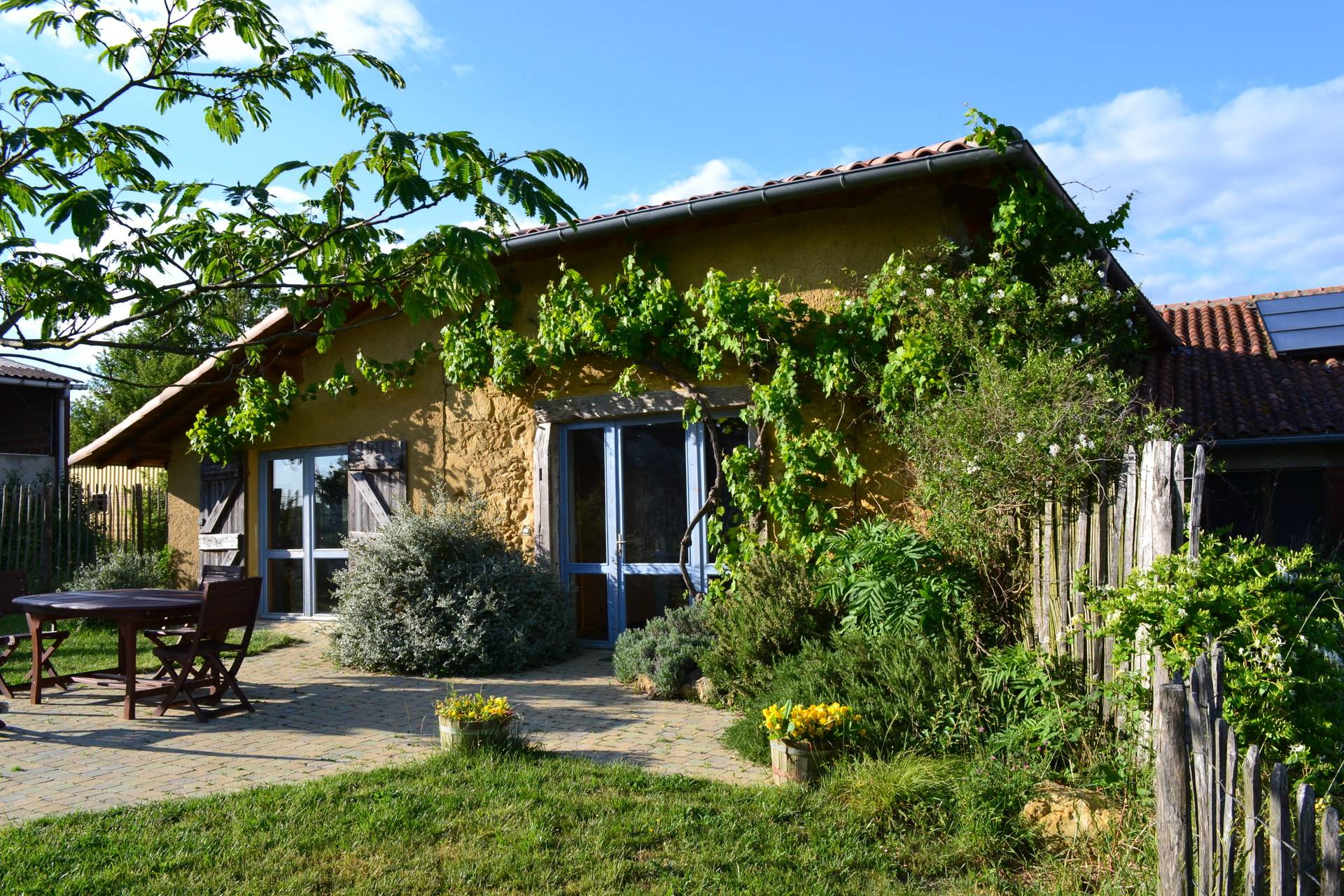 L'éco-gîte Laurier est aménagé dans l’ancienne grange, restaurée avec des matériaux sains et authentiques, (terre crue, bois, mortiers de chaux, terre cuite) qui donnent aux pièces une atmosphère sereine et lumineuse.