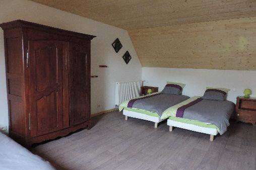 l'étage, une chambre (1 lit 2 personnes) avec salle d'eau ouverte, 1 chambre (3 lits 1 personne). WC indépendant.