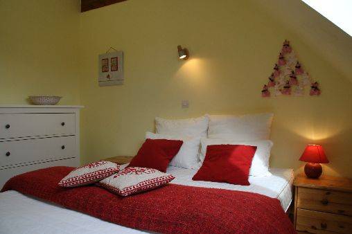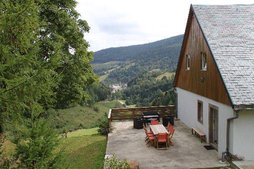 L'Atelier: Gîte sur deux niveaux, dans une ferme de montagne. Accés direct sur l'extérieur. Au rez-de-chaussée, grande cuisine équipée, coin repas de 40 m² et 1 WC et débarras. A l'étage, Ch1 : 1 lit double de 2 personnes, Ch2 : 1 lit double de 2 personnes, Ch3 : 2 lits simples, Ch4 : 2 lits superposés., coin salon avec 2 canapés-lits avec TV, 1 salle d'eau (douche,lavabo, WC) et une SDB (baignoire,lavabo). Location de draps possible, forfait ménage proposé, parking, terrain. Situation exceptionnelle, beau panorama, très calme, gîte entouré de prairies et forêts au milieu d'un domaine de 10 Hectares, grande terrasse. Equipement bébé sur demande. Plusieurs points pique-nique disponibles alentour .