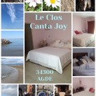 « Le Clos Canta Joy », une propriété privée sur 2.500 m2, vous propose la Location de maisons de vacances en bord de mer gîtes de France de-charme classés 4* :*Maisons Individuelles avec jardin en bord de Plage Méditerranée. Elles bénéficient d’un accès direct (chemin de plage) sur la plage, par le chemin dit « l’impasse du Perdigal -Gaillard ». Nous sommes à une minute de temps à pied de la plage de sable fin, Située entre la station Balnéaire du Cap d’AGDE et le Grau d’Agde (Commune d’AGDE 34300), Hérault – Languedoc Roussillon.