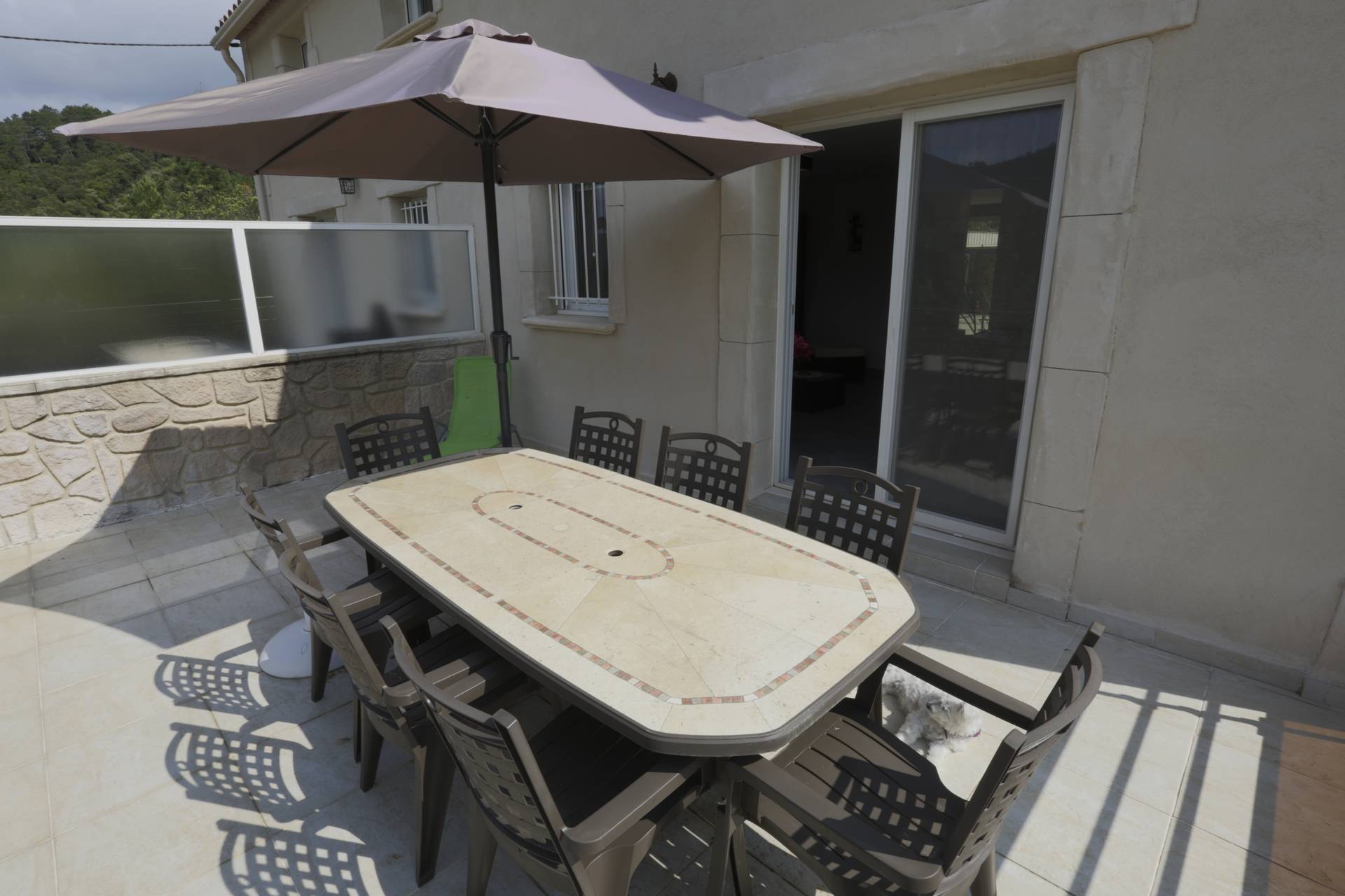La propriété se situe sur 4hectares30, loin du bruit avec une très jolie vue sur les Cévennes, dans un espace ensoleillé